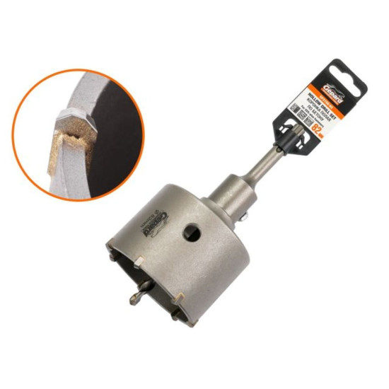 используется в перфораторах с типом крепления SDS-plus для высверливания глухих подрозеточных отверстий и отверстий для распределительных монтажных коробок в стенах. Коронка имеет твердосплавные пластины повышенной прочности. Специальное расположение зубьев и твердосплавное исполнение позволяет проводить быстрое и качественное сверление