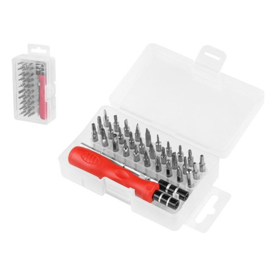 Набор состоит из 30 бит, держателя и удлинителя. Длина биты: 25 мм; Диаметр биты: 4 мм.