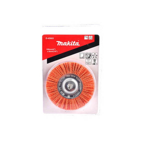 Нейлоновая дисковая шлифовальная щетка Makita D-45602 предназначена для легких зачистных работ, придания шероховатости, удаления заусенцев, лака, шлака окалины, особенно при зачистке труднодоступных мест. Длина: 80 мм Диаметр: 100 мм Хвостовик: 6 мм